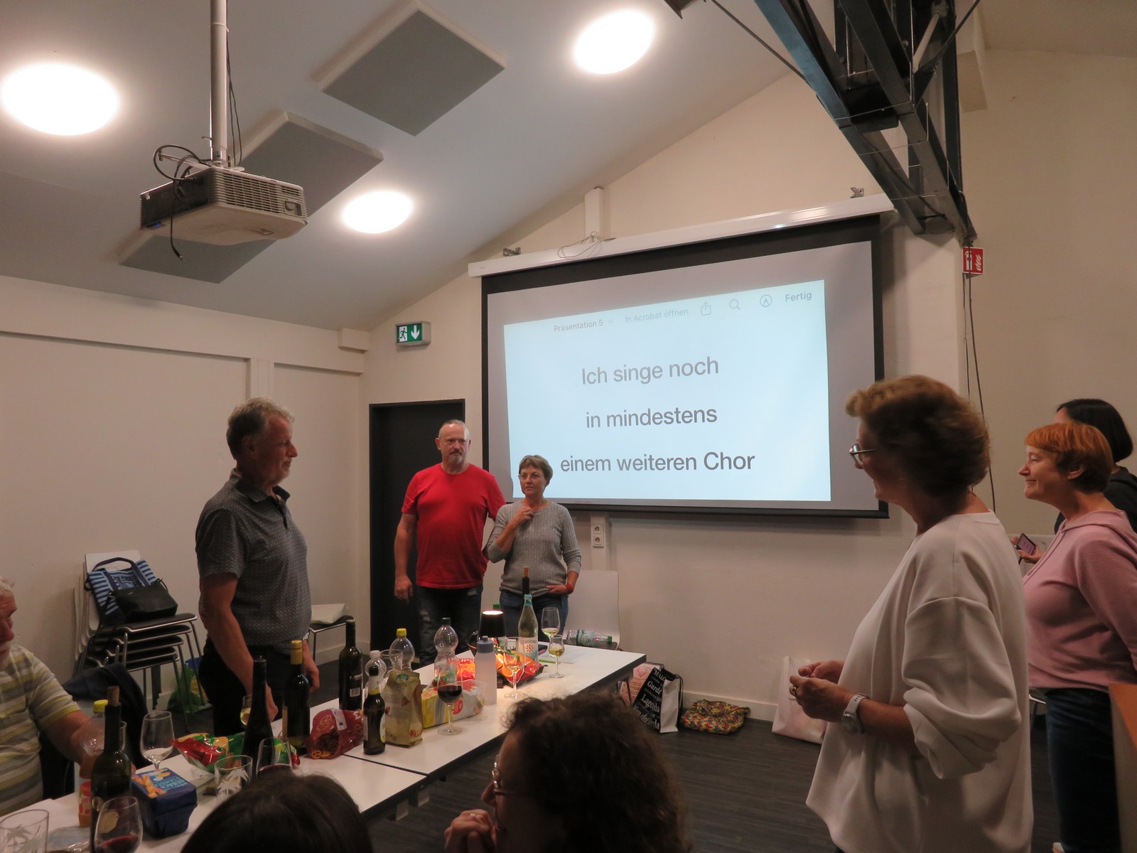 Vom 10.-12- Oktober 2025 waren wir zum Probenwochenende in Wolfstein/Pfalz. Es war das erste Mal, das wirklich alle Mitglieder teilgenommen haben. Wir haben große Fortschritte im Hinblick auf die Erarbeitung unseres Konzertprogrammes gemacht und auch Weihnachtslieder standen auf dem Programm. Ein Highlight war wie immer unser bunter Abend am Samstag wofür einige Sängerinnen und Sänger lustige Beiträge vorbereitet hatten. Hier eine Sammlung der Bilder vom WE.